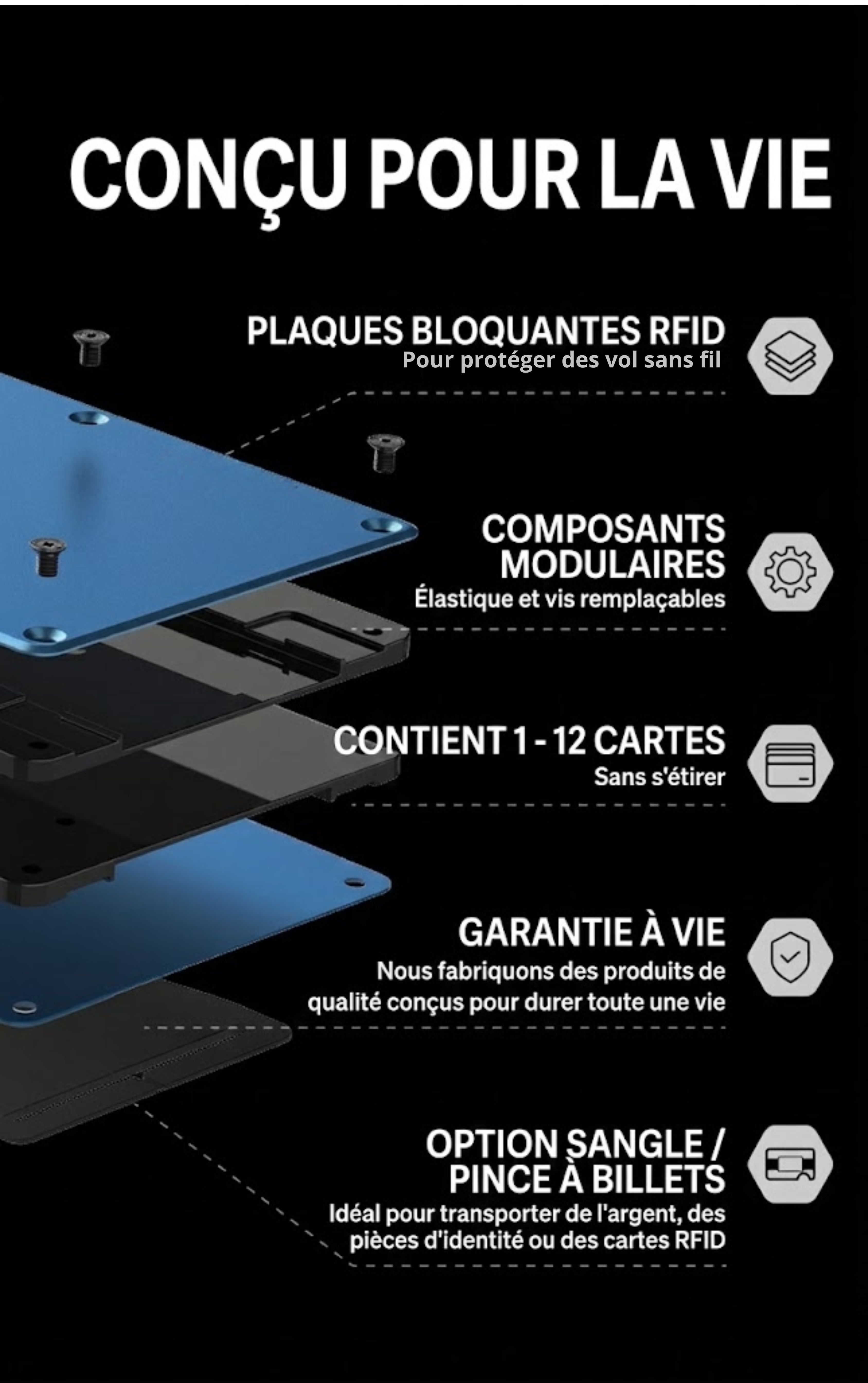 Contrairement aux copies bon marché qui inondent la France, notre porte-cartes est certifié pour 30 000 cycles d’ouverture, usiné en matériaux premium et garanti à vie.